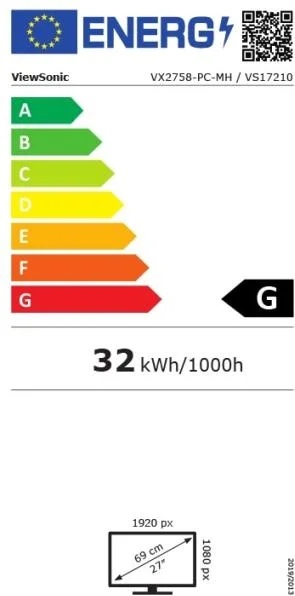 Параметър< strong>Стойност Размер:27"Рез люция:1920x1080Ф ормат:16:9Пане л:VAПодсветка :LEDИзвит:да - 1800 RСтъпка:0.311 mm (H) x 0.311 mm (V)Покритие на екрана:Anti-Glare Яркост:280 cd/m2Статичен контраст:3000 :1Динамичен контраст:80000000 :1Ъгли на виждане:178? / 178?Време за реакция:1 msЧестота на опресняване:144 HzГейм технология:FreeSync (AMD)Цветове на дисплея:16.7 MsRGB покритие:120%NT SC:88%Колонки: 2 x 2WVGA:1 x VGAHDMI:2 x HDMIАудио:1 x 3.5 mm audio jackИзходи:1 x 3.5 mm audio jackСтойка:Нак лон -5°/20°Функции:Blue Light Filter ; Flicker-FreeВключени аксесоари:VX2758-PC-mh C13 / CEE22) x Male-Male) x1, Quick Start GuideВъншно захранване:да Енергопотребление: 24.5 WСертификати:CE, CE EMC, C REACH, WEEE BSMI, RCM, GEЦвят на корпуса:Черен Тънка рамка:даГара нция:36 месецаТегло: 4.300 кг.