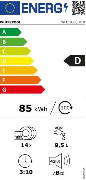 Energy Consumption for 100 cycles Eco Programme (EU 2017/1369): 85
